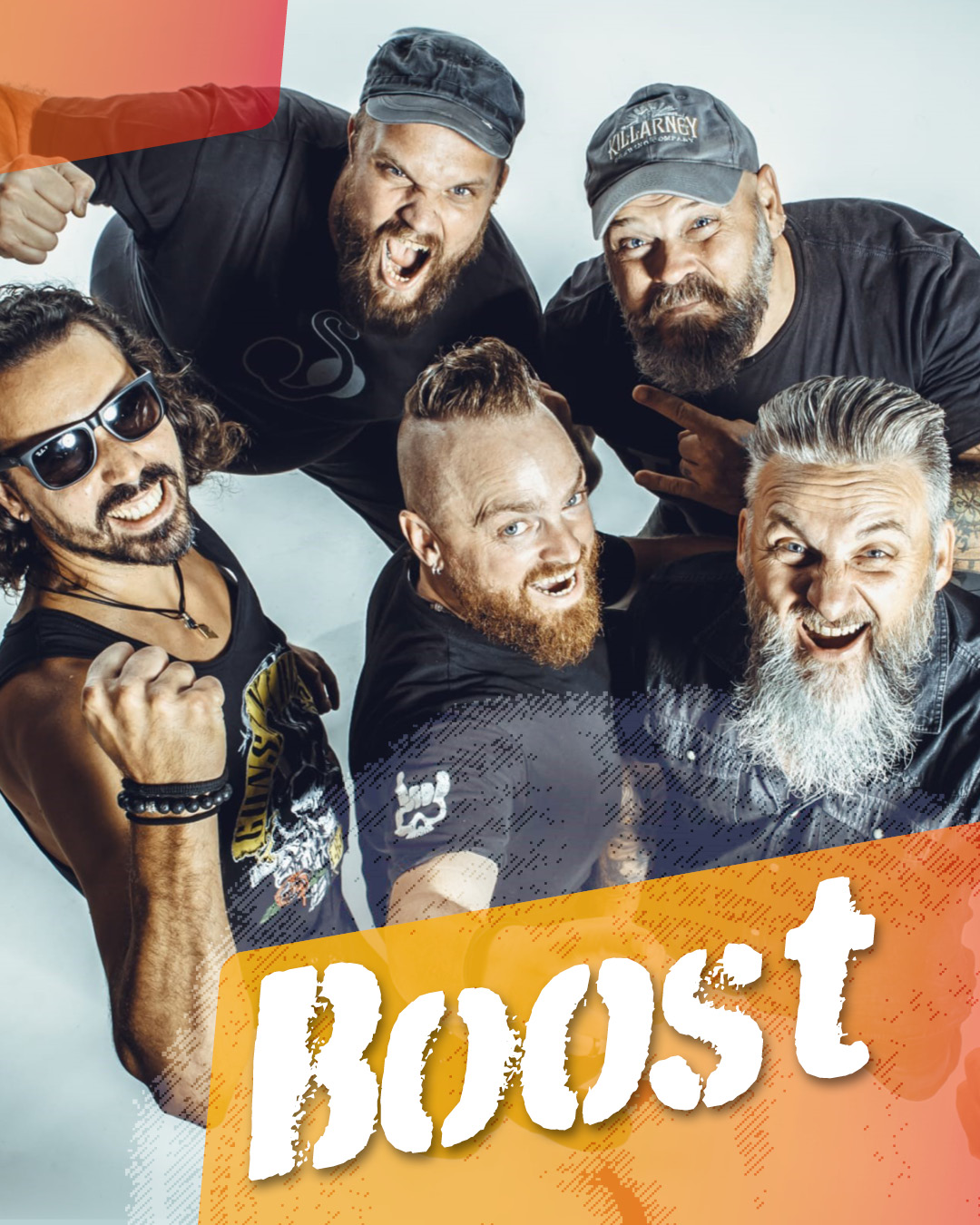 Vijf ijzersterke muzikanten, stevige rocknummers, scheurende gitaren, opzwepende drums en één bonk energie; dat is BOOST! De mannen uit Boekel, Gemert en omstreken zorgen er voor dat stil staan moeilijk is en het ontstaan van een mosh-pit is zeker niet ondenkbaar! Met covers van grootheden zoals Iron Maiden, Led Zeppelin, Green Day, Rage Against The Machine, Judas Priest, en Guns ’n Roses bouwt Boost een feestje met je. Kortom een optreden met een BOOST van rock en energie! SEE YOU!!